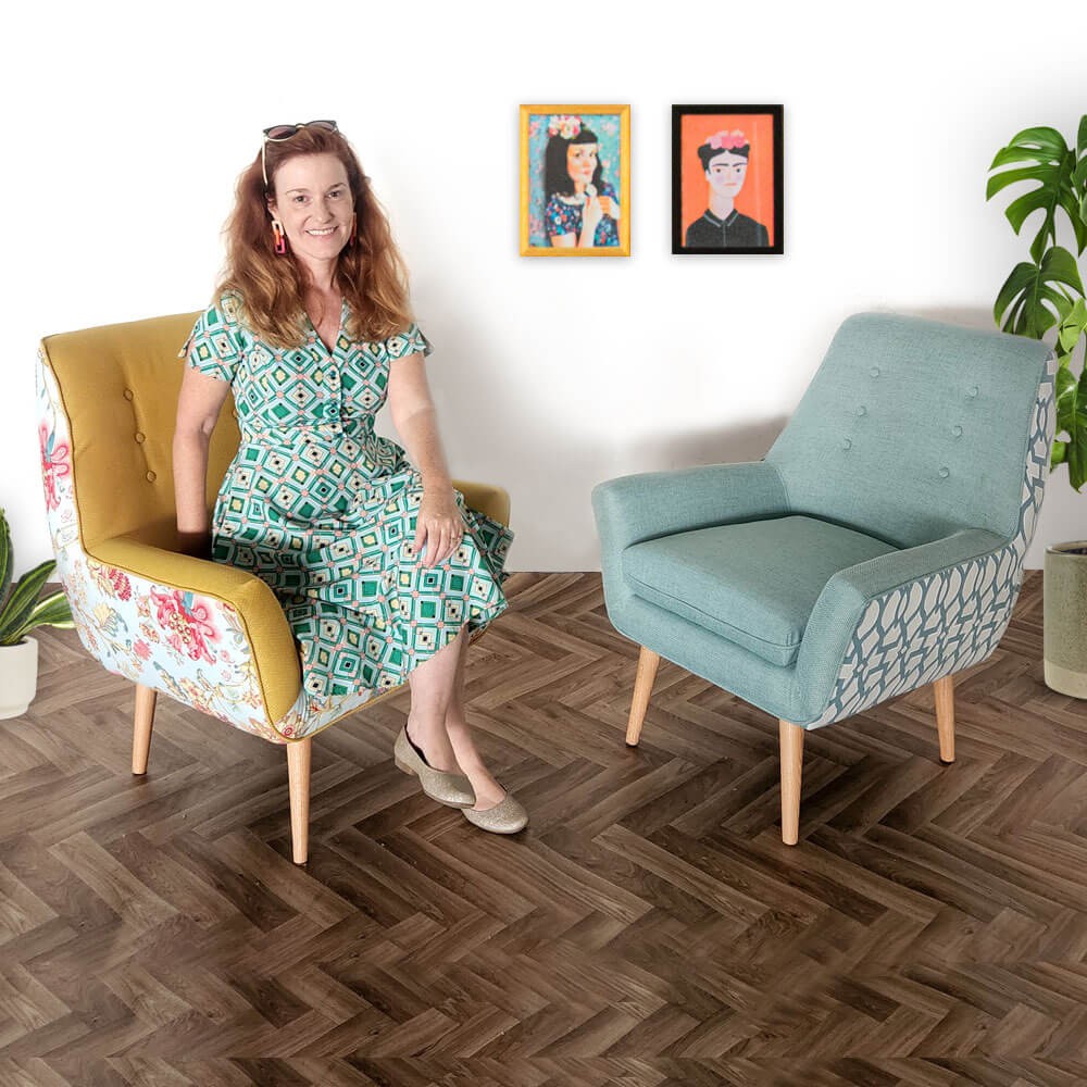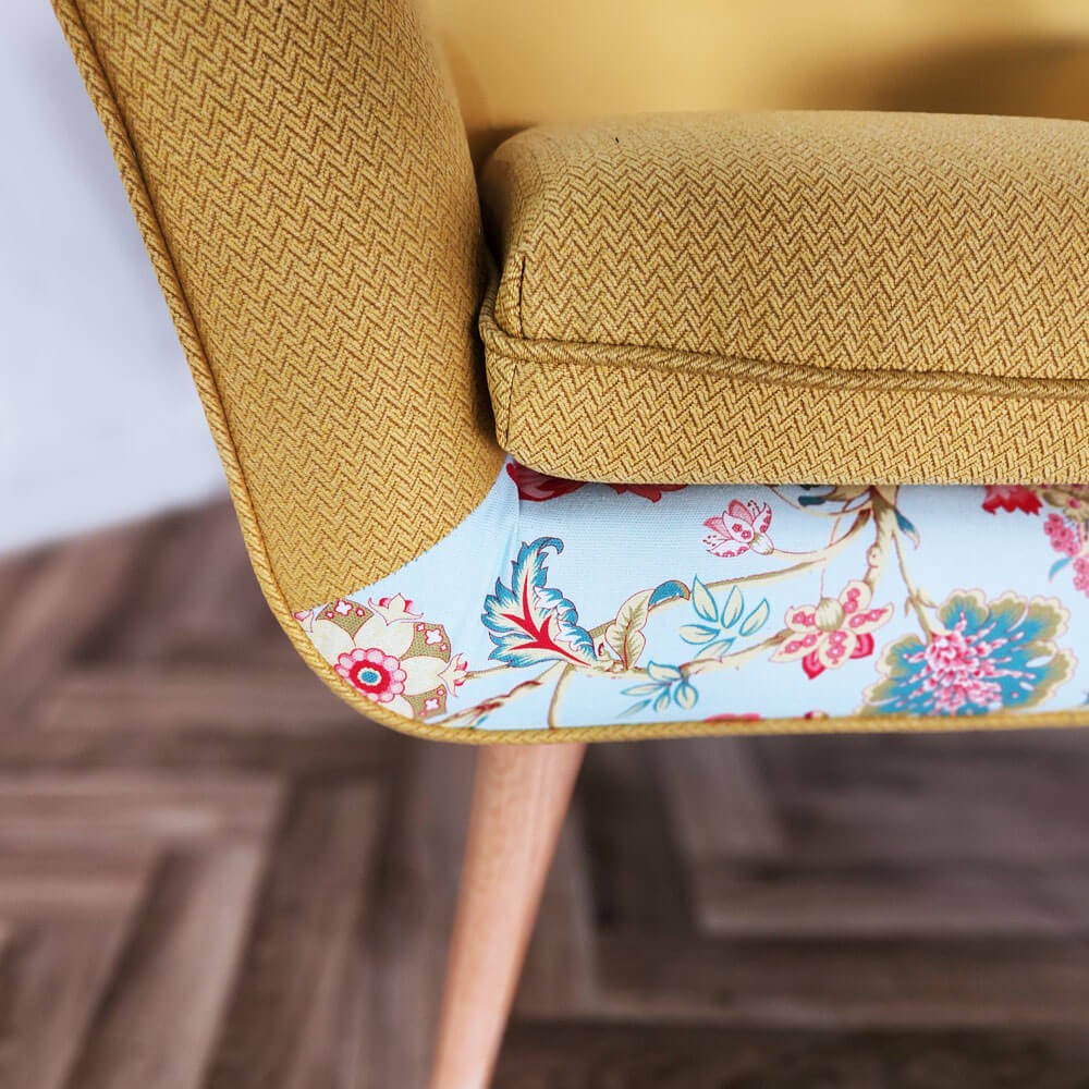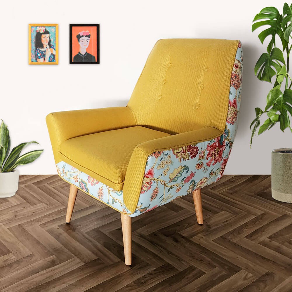 כורסה מעוצבת גניה בעיצוב רטרו ובריפוד משולב שני בדים