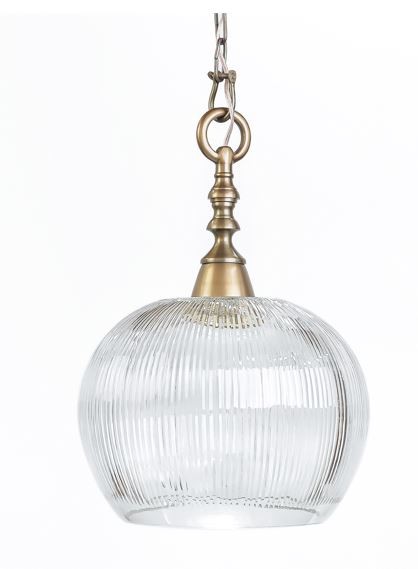 מנורת זכוכית על סידור של טבעת ושרשרת.