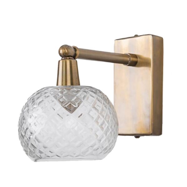 זרוע מעוגלת בגוון ברונזה על בסיס עגול רקוע עם זכוכית קריסטל מאורכת.