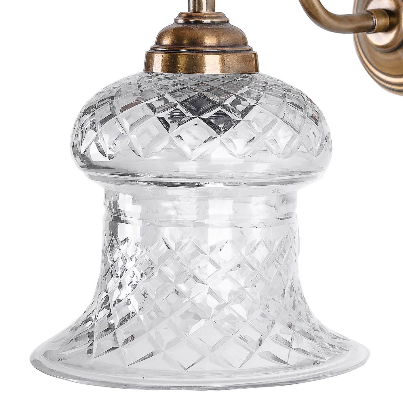 זרוע בגוון ברונזה על בסיס רקוע עם זכוכית קריסטל מאורכת.