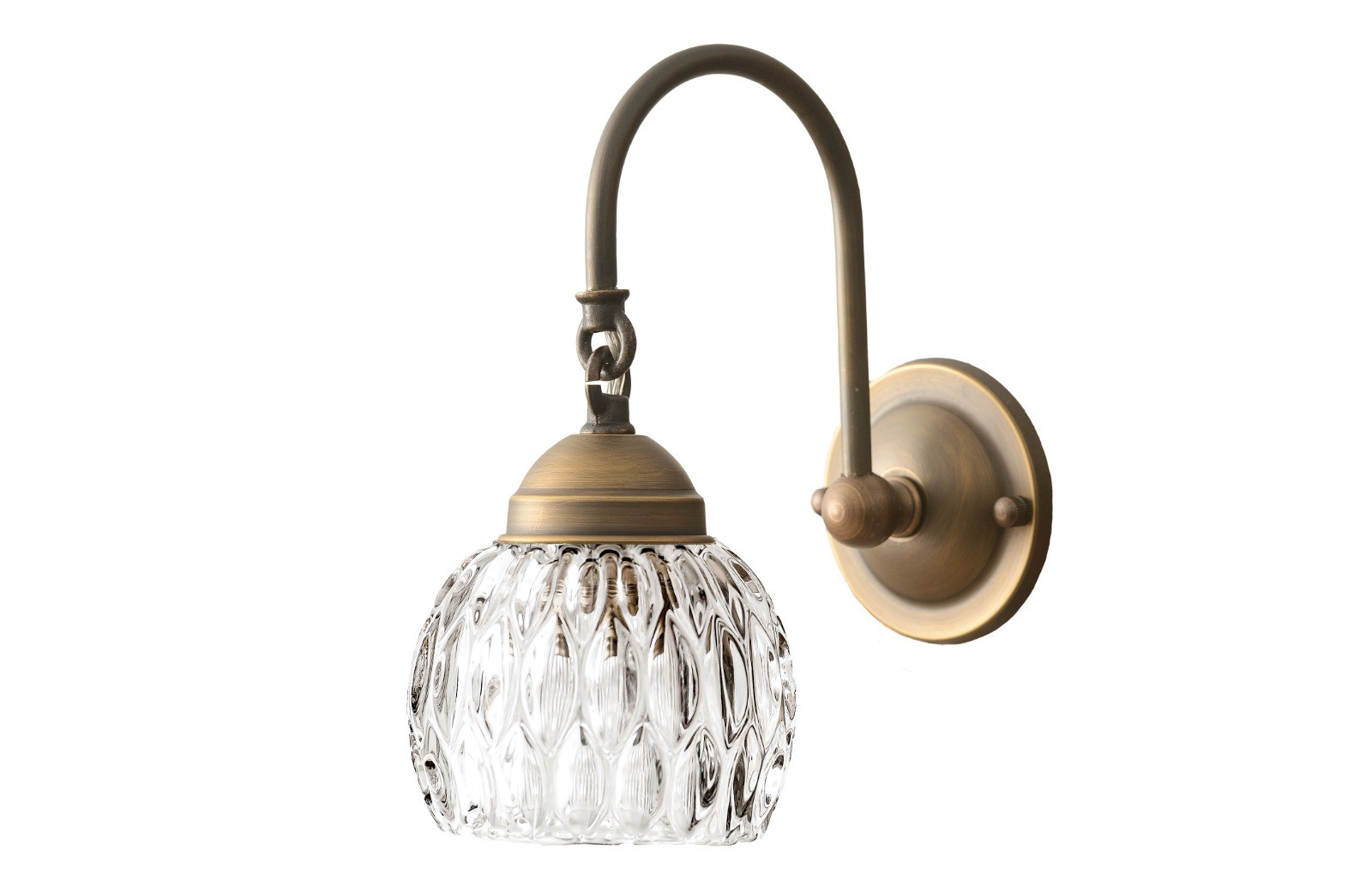 זרוע פליז נחושת בגימור איכותי, בצורת קשת, עם חובק תלוי ובסיומה כוס במראה מיוחד ויוקרתי